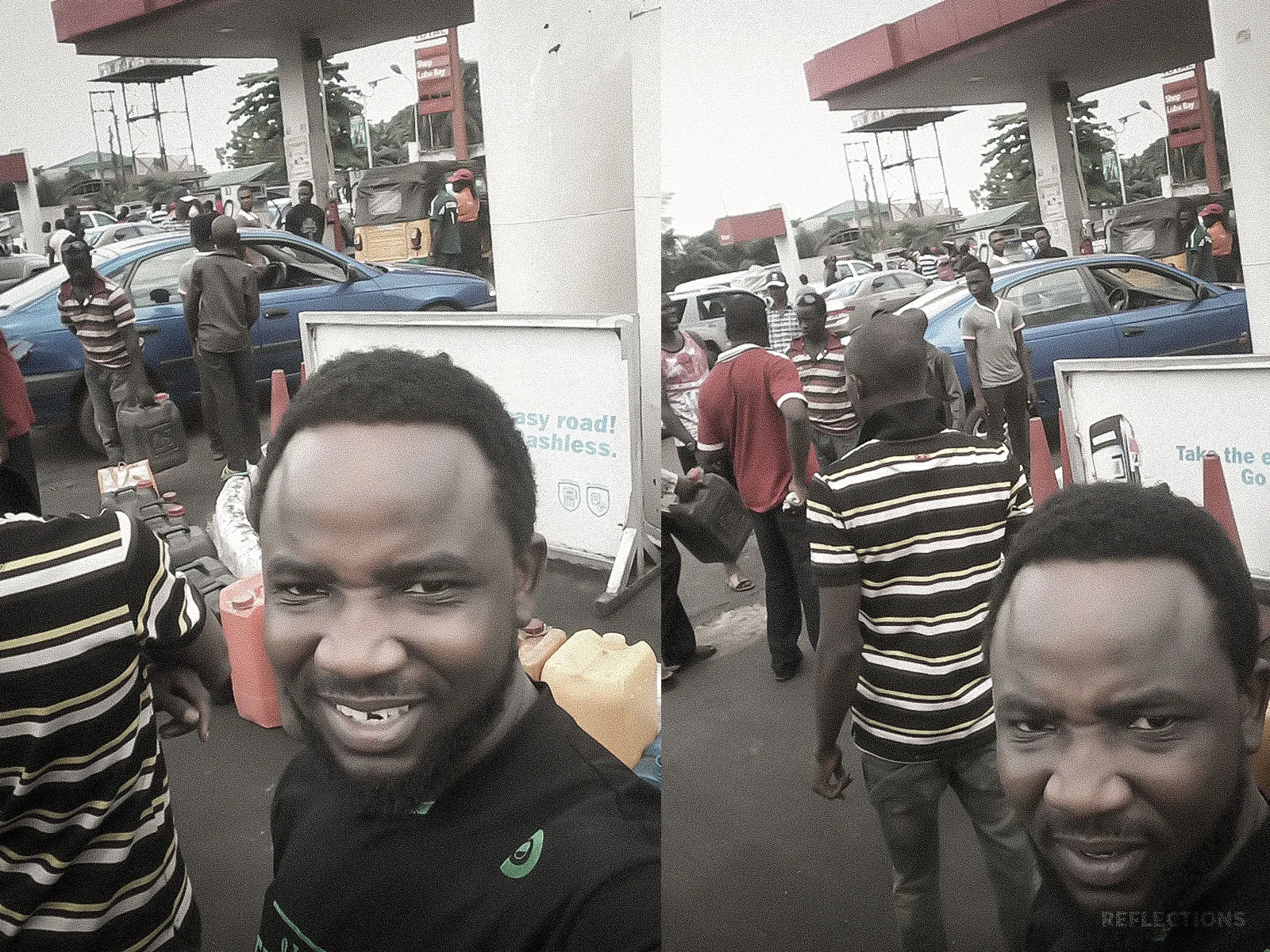 As an add on, while all of these were happening, there was this certain young man who held a 5 litres keg. He argued with a man who had two jerrycans in his Mercedes Benz C300 about something I couldn't reconcile, then later he came to me that we would not get fuel until 2:00pm. He later joined the queue, then came to tell me and my brother to try and monitor the fuel pump area as some people were jumping the queue. Later I saw him jumping the queue trying to put his 5 litres keg in the cab man's vehicle so as to get fuel. Funny people!!