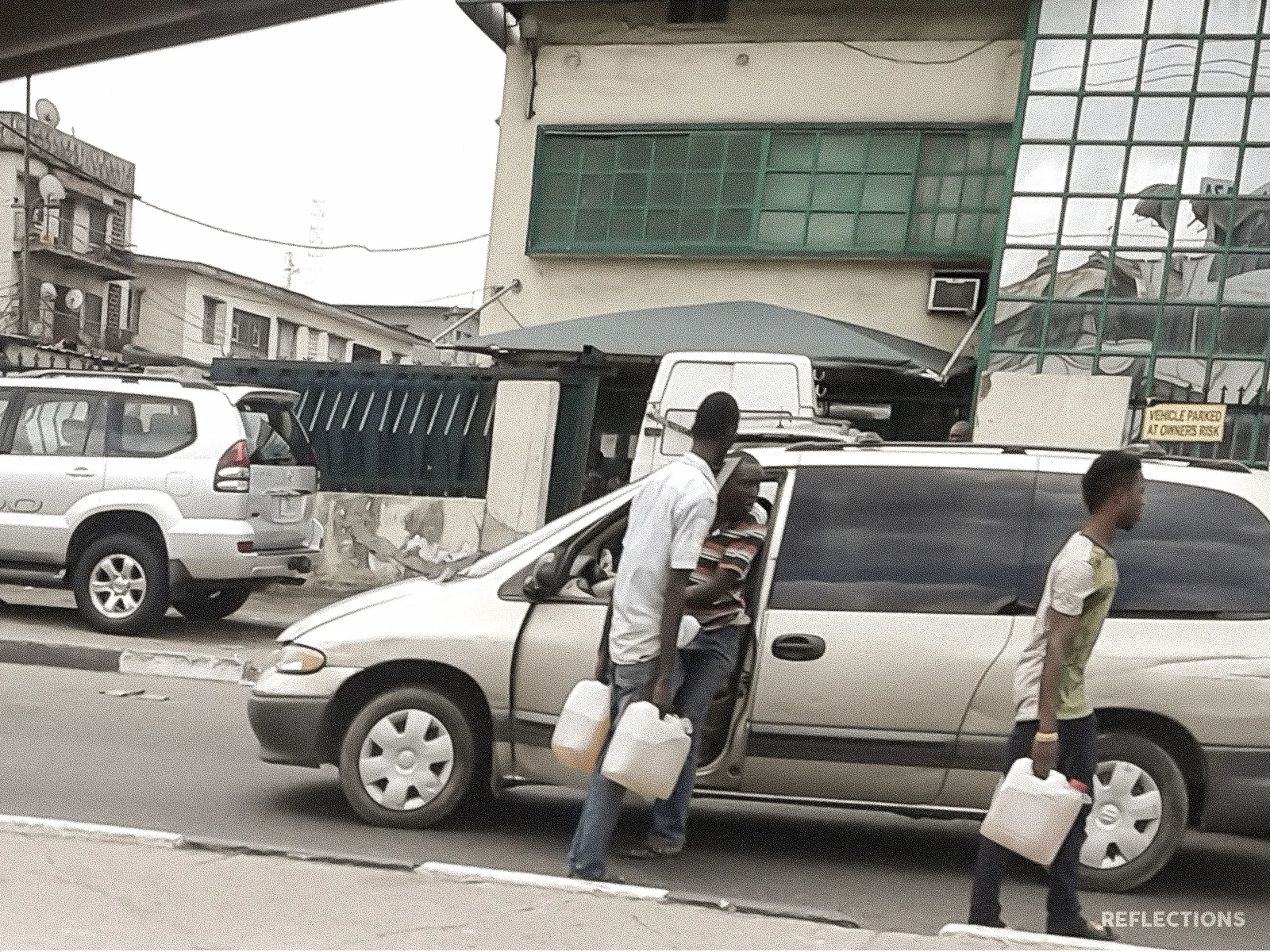Around 8:00am, while I was trying to put the remaining fuel I got through my wife's colleague on Friday to get ready for Church, a good samaritan passed by and hinted me that fuel was currently sold at a filling station close by. Immediately I took the jerrycans available and asked my brother to accompany me. The queue was reasonable but we decided not to join the car queue but the queue of jerrycans.